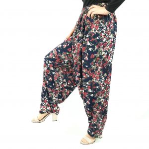 Çiçekli Yöresel Menekşe Aşağıdan Ağlı Kadın Şalvar Jumbo Battal Beden