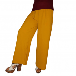 Toptan Ayrobin Bayan Pantolon Salaş Kesim Bol Paça Cepsiz Sarı 1 Seri (42-44-46-48)