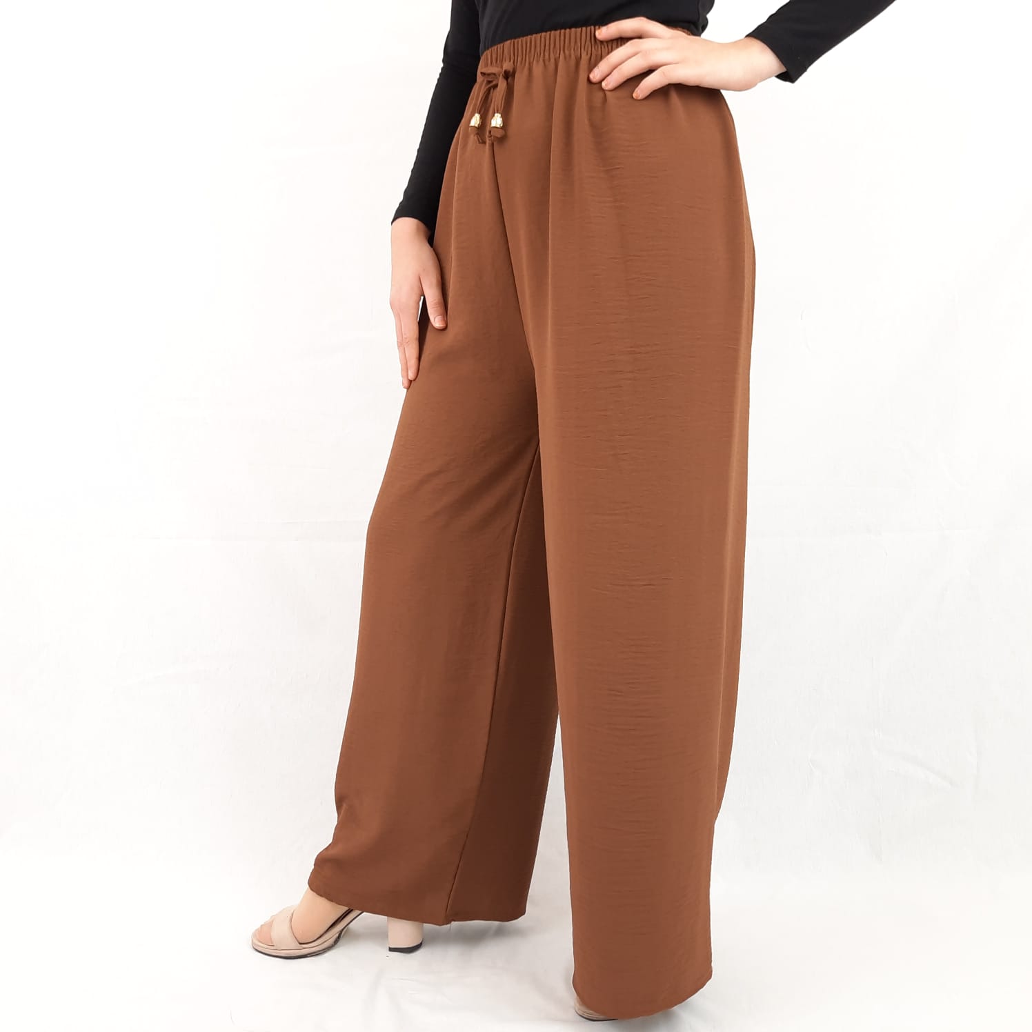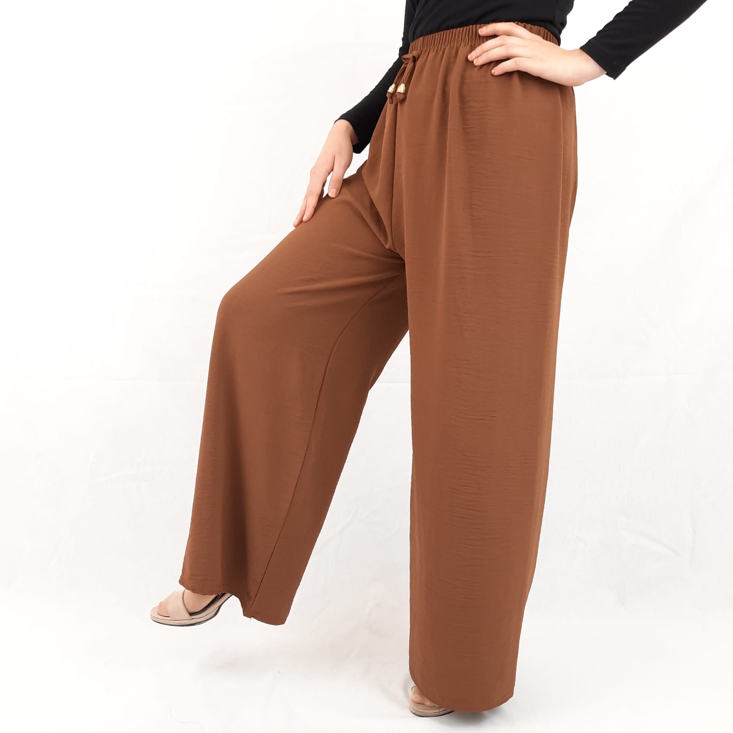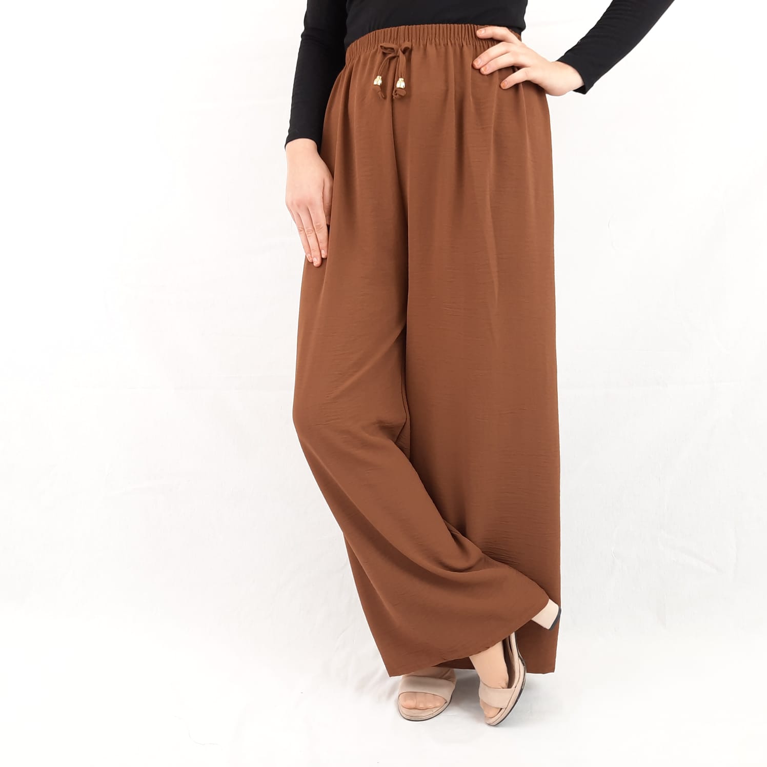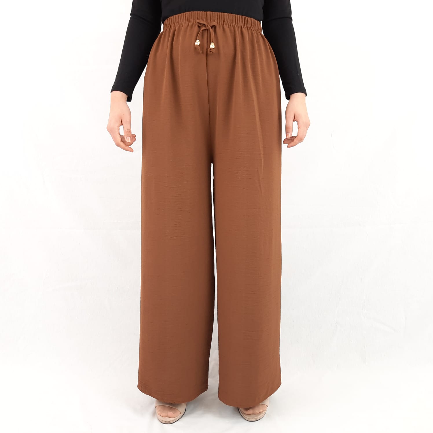 Ayrobin Bayan Pantolon Salaş Kesim Bol Paça Cepsiz Taba Rengi